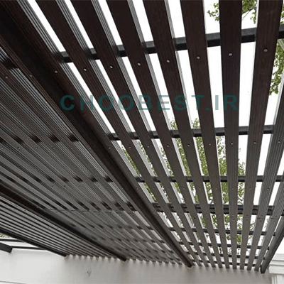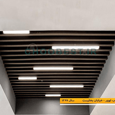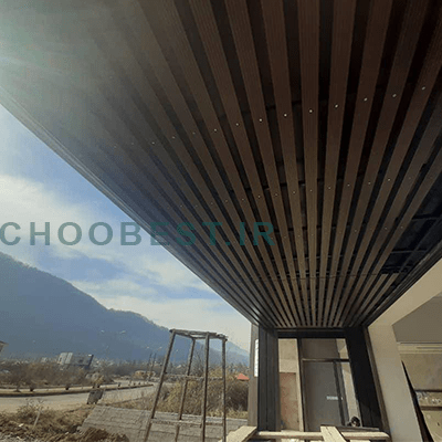 سقف لوور چوب پلاست با شاسی کشی فلزی روی سقف موجود و بصورت کاذب اجرا میگردد. نحوه اتصال پروفیل چوب پلاست به اهن زیرسازی با ناودانی الومینیومی می باشد. این نوع سقف مناسب محیط های اداری ، تجاری ، استخر ، محیط های مرطوب (با تهویه مناسب) می باشد .