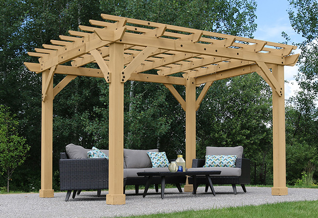 - در حقیقت هرچند که پرگولا می تواند از سقف بسیار وسیعی برخوردار باشد اما از نظر کف سازی مانند آلاچیق نیاز به استفاده از کفپوش و طراحی کف ندارد به همین علت است که قیمت آن به نسبت آلاچیق می تواند کمتر باشد. همچنین هرچند که در ساخت پرگولا استفاده چوب متداول است اما استفاده چوب پلاست نیز امکان پذیر است که قیمت پرگولا پیش ساخته را بسیار بهتر می نماید.