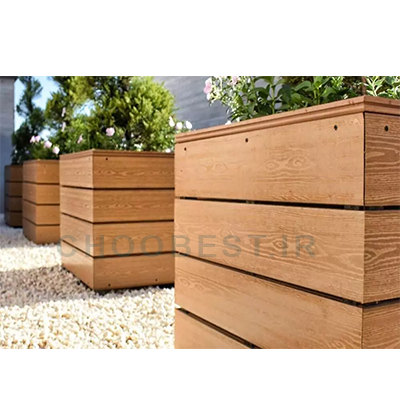 فلاورباکس چوب پلاست با طول 0.5 عرض 0.5 و ارتفاع 0.6 با پوشش داخلی گلدان پلاستیکی با پروفیل ST (150*25) به عنوان پروفیل بدنه و پروفیل N2(70*12) به عنوان قرنیز بالای فلاورباکس